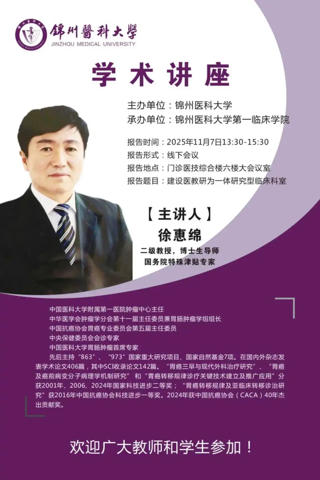下一条:关于举办锦州医科大学学术活动日“学术大讲堂”系列讲座的通知